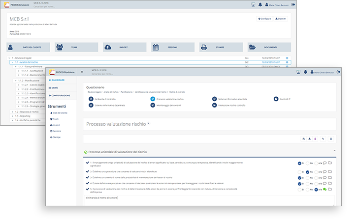 PROFIS/Revisione è lo strumento web facile da utilizzare e in grado di guidare il revisore in tutte le fasi in cui si articola l’attività di revisione, dalla verifica della regolare tenuta della contabilità alla revisione conclusiva sul bilancio, redatto in base ai principi contabili nazionali. Strutturato in base alle varie fasi di lavoro, quindi, questo strumento permette di controllare facilmente gli stati di avanzamento, grazie anche al supporto delle carte di lavoro elaborate dalla procedura o inserite come allegato.